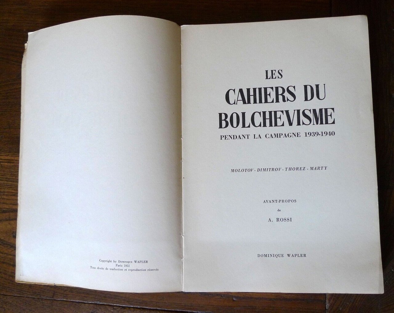LE CAHIERS DU BOLCHEVISMEPENDANT LA CAMPAGNE 1939-1940.MOLOTOV - DIMITROV - THOREZ - MARTY.Avant-propos de A. Rossi.Dominique Wapler, Paris 1951,brossura, 26,5x18,5 cm., pp.XCIII-67,testo in francese,peso: g.600