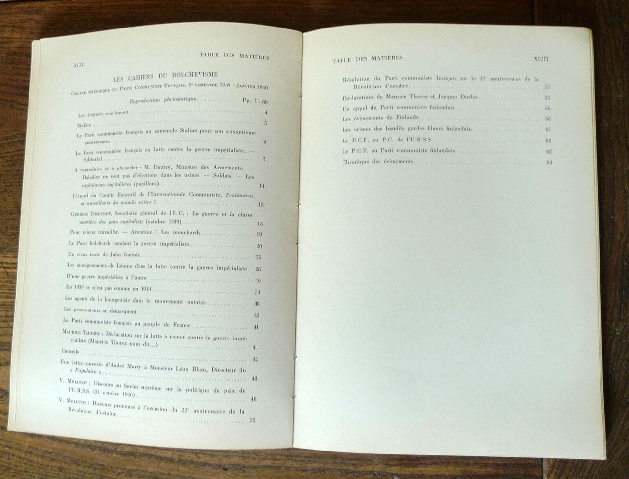 LE CAHIERS DU BOLCHEVISME PENDANT LA CAMPAGNE 1939-1940,1951[comunismo,Francia