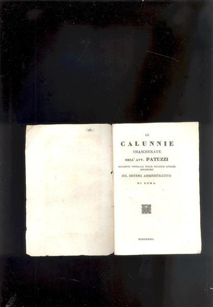 LE CALUNNIE SMASCHERATE DELL' AVV. PATUZZI SEDICENTE GENERALE DELLE GUARDIE CIVICHE BOLOGNESI SUL SISTEMA AMMINISTRATIVO DI ROMA.