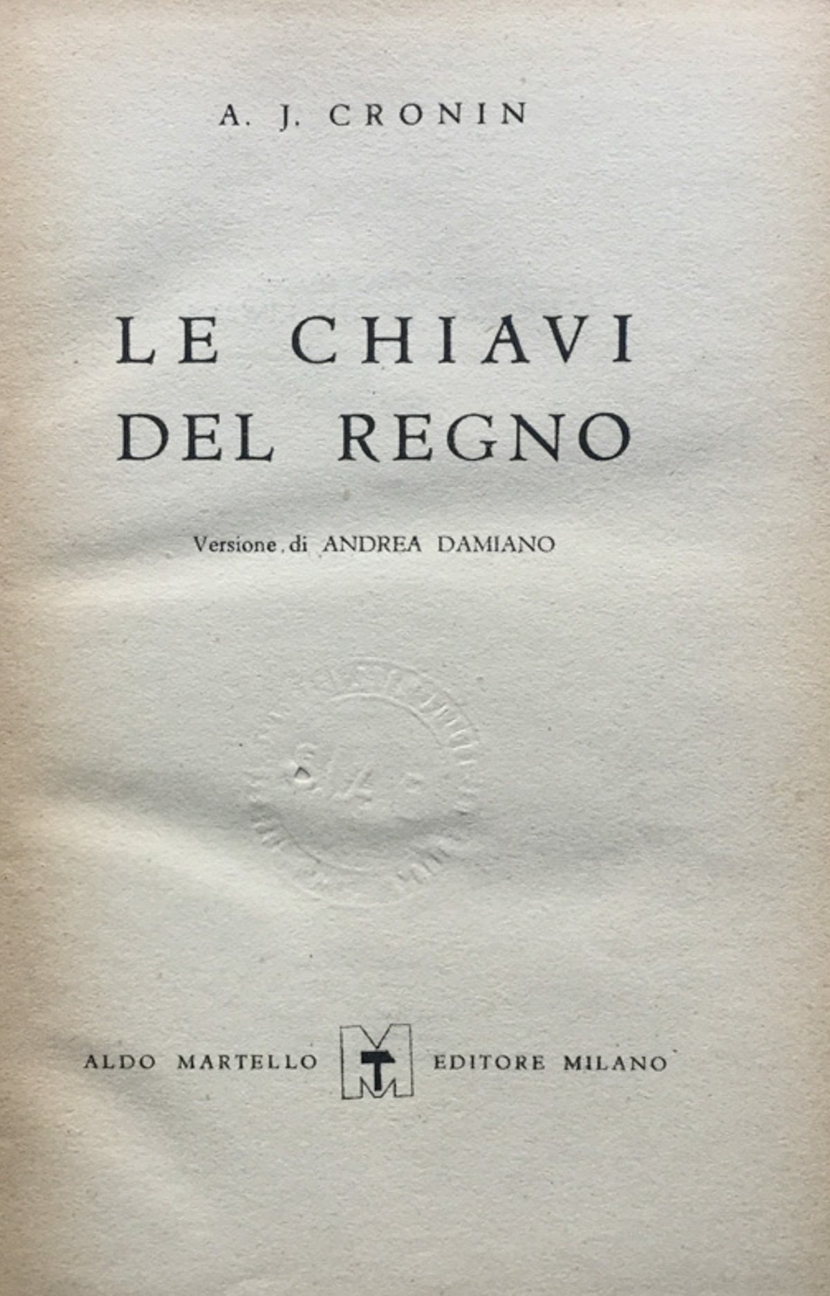 Le chiavi del regno. Vers. di Andrea Damiano.