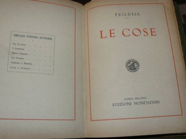 In-8°, numerazione tripla, pp. 140 (dedicate alle poesie di Trilussa), 78 (dedicate alle favole ad opera di Trilussa), 78 (dedicate ai sonetti di Pizzarini), alcune pregevoli illustrazioni in b/n nella sezione dedicata alle favole romanesche, legatura in mezza pelle con titolo in oro al dorso. Abrasioni alla pelle.