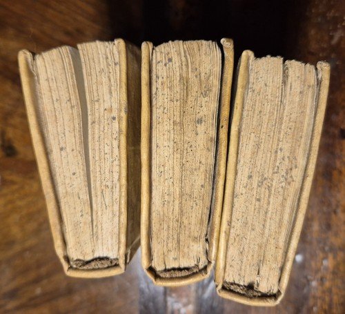 304 + 328 + 330 pagine, 3 belle incisioni in antiporta dei volumi. Copertine coeve in tutta pergamena con titolo dorato entro tassello al dorso. Dimensioni: 8,5 x 13 cm. Stato di conservazione: molto buono (fioriture, copertine un po' sporche)