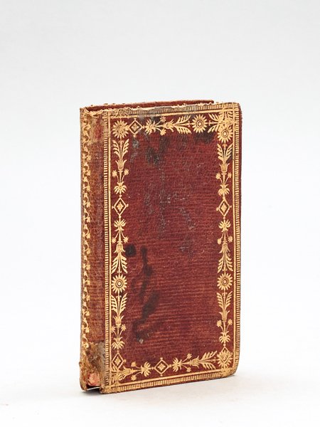 1 vol. in-32 reliure de l'époque plein maroquin rouge à grains long, toutes tranches dorées, Chez Louis Janet, Paris, 1816, avec 2 feuillets dépliants Cet almanach paraîtra de 1815 à 1848. "Cet almanach serait donc très probablement la suite du "Petit Désiré des Français" de 1789" (Grand-Carteret, Almanachs, 443). Etat moyen (accrocs avec mq. en coiffes et coupes, très bon état intérieur)