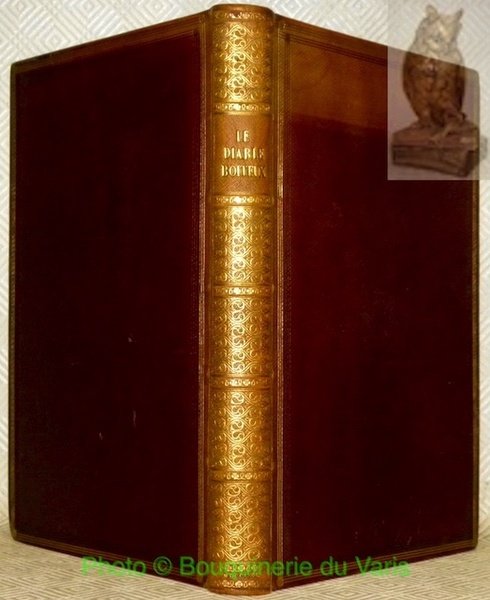 - plein chagrin avec titre et ornementations dorés au dos. Triple encadrements dorés sur les deux plats. Toutes tranches dorées. Dos et haut du bord du plat supérieur insolés. Rousseurs seulement sur les premières et dernières pages.