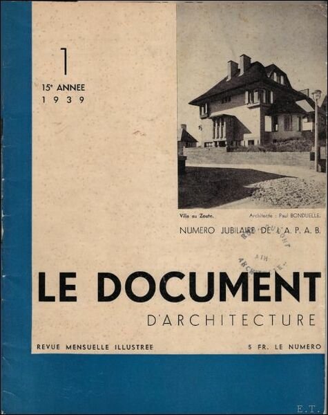 LE DOCUMENT D'ARCHITECTURE 1. 15e ANNEE 1939, Numero jubilaire de L'A.P.A.B.