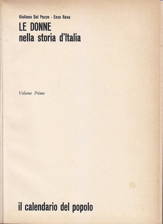 LE DONNE NELLA STORIA D’ITALIA 2 volumi Di Giuliana Dal Pozzo e Enzo Rava 1969