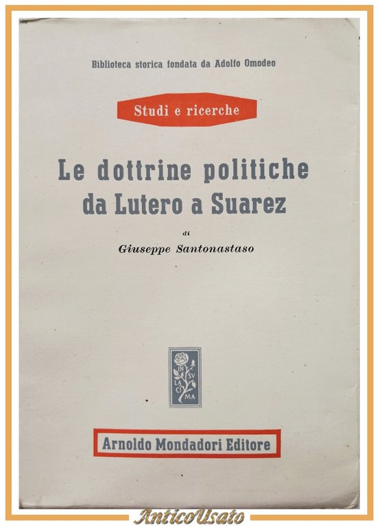 LE DOTTRINE POLITICHE DA LUTERO A SUAREZ di Giuseppe Santonastaso 1946 Libro