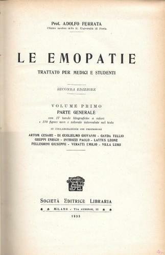 Le emopatie. Trattato per medici e studenti, vol. 1° Parte Generale, in 2 tomi