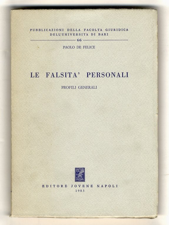 Napoli, Jovene, 1983, in-8, brossura editoriale, pp. XV, 247. Ottime condizioni: intonso.
