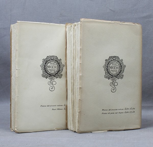 Due volumi in-8°: XX, 653 pp., 1 c. - 4 cc., 386 pp., 1 c.b.; copertine editoriali stampa e frontespizio figurati. Ottimo esemplare.
