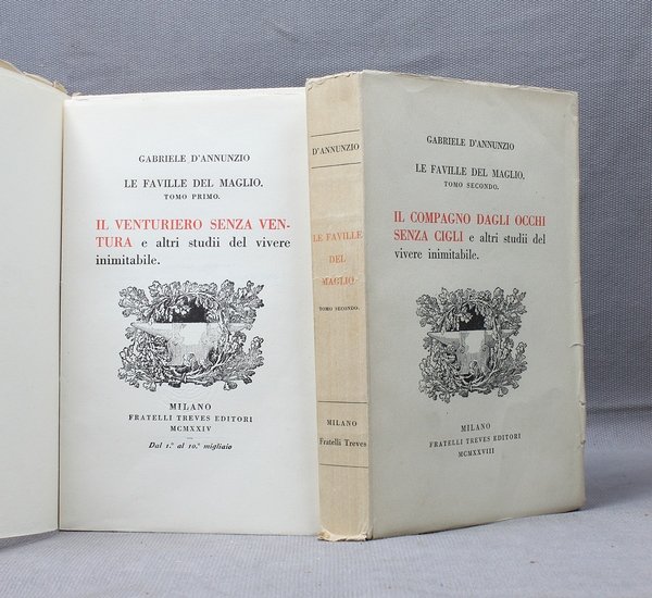 Le faville del maglio. Tomo primo: Il venturiero senza ventura e altri studii del vivere inimitabile. - Milano, Fratelli Treves, 1924. Tomo secondo: Il compagno dagli occhi senza cigli e altri studii del vivere inimitabile.