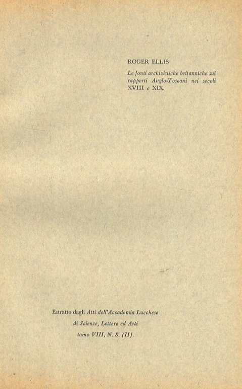 Le fonti archivistiche britanniche sui rapporti Anglo-Toscani nei secoli XVIII e XIX.