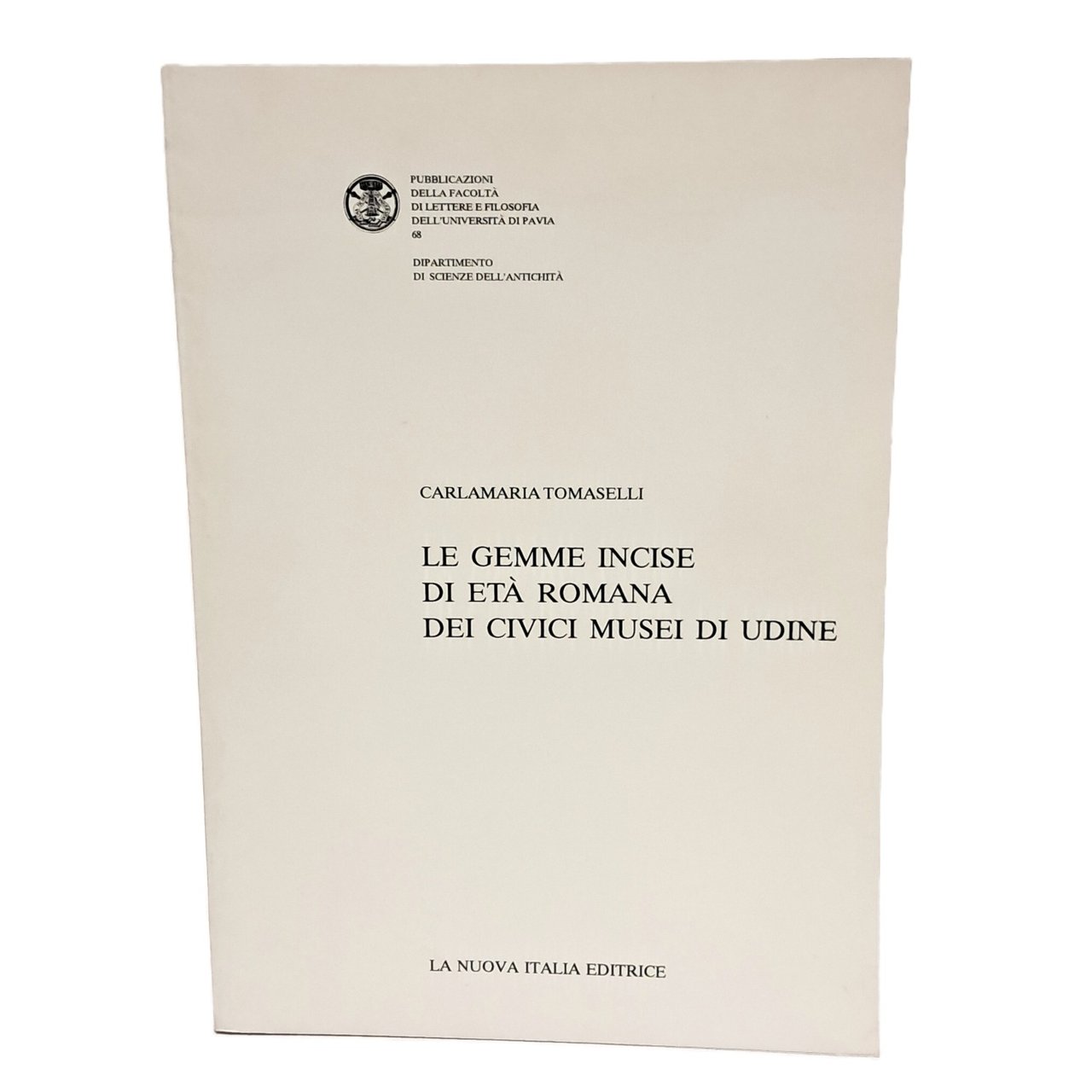 PRIMA EDIZIONE, collana Pubblicazioni della facoltà di lettere e filosofia dell'università di Pavia numero 68 Presso i Civici Musei di Udine sono conservate più di 400 gemme romane, acquisite grazie a lasciti e donazioni di collezionisti locali. Un consistente numero di questi antichi intagli proviene dalla collezione di Luigi Torrelazzi, orefice e gioielliere udinese aggiuntesi a quelli della raccolta Toppo donata alla città, con modalità analoghe dieci anni prima. Catalogo con schede e indici degli autori, soggetti, forme, materiali e datazioni. Seguono tavole di concordanza e relazione gemmologica di R. De Eccher e G. Bossi. In brossura. Pp. 189+XXI tavole. Ottime condizioni.