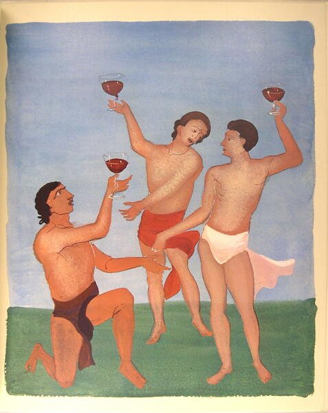 Établissements Nicolas impression Draeger Frères, Monrouge, 1972. In/4 broché, couverture rempliée illustrée en couleur. 14 ff. n. ch. Illustrée de 13 gouaches d’André Derain. Joint une liste de tarifs de 11 pp. Superbe plaquette éditée à la gloire des vins de France, et publiée à l’occasion des 150 ans de la fondation des Etablissements Nicolas, naissance en 1822. Présenté par Thierry Maulnier de l’Académie française. albums les plus recherchés. Fritsch, 588.