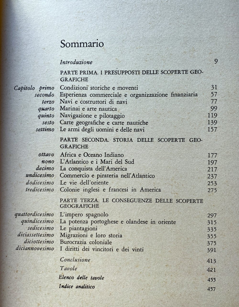 Soggetti: Scoperte geografiche Storia Geografia Condizioni storiche Esplorazioni Commercio Navi Costruttori Marinai Arte nautica Navigazione Pilotaggio Carte geografiche Nautiche Armi Africa Oceano Indiano Atlantico Mari del Sud Conquista America Pirateria Vie Oriente Colonie inglesi Colonialismo Imperialismo Oro Impero spagnolo Portoghese Olandese Spagna Portogallo Olanda Piantagioni Migrazioni Burocrazia coloniale Diritti Vincitori Vinti Mappe Libri illustrati Vintage fuori catalogo Bibliografia Riferimento Collezionismo Navigatori Esploratori Biografie Memorie Norvegesi Groenlandia Das Zeitalter der Entdeckungen Expansión del mundo The Spanish Seaborne Empire Insediamenti Colonie Civilizzazione Civiltà Conquistatori Nuove Terre inesplorate vergini Avventure Pionieri Enrico il Navigatore Viaggio XV Ricognizione Imprese Oltremare Problemi Conoscenza Espansione Scienza Vita pratica Europa Nuovo Mondo Pirati Rotte Arabi Asia Banda Isole Brasile Capo Caravelle Carichi Caraibi Trasporti Bartolomeo de las Casas Castiglia Carte Cristiani Cristianesimo Divulgazione Evangelizzazione Francisco Pizarro Gesuiti Razzismo Costa Cristoforo Colombo Conquistadores Cortés Corona Oriente Encomienda Inghilterra Spedizioni Esportazioni Materie prime Frutta Patate Pomodoro Coltivazioni Caffè Spezie Flotta Combattimento Francese Galere Vasco da Gama Governatore Geografico Cannoni Porti Hispaniola India Indie Isole Regno Italiani Terra di lavoro Latitudine Lisbona Londra Longitudine Magellano Continente Malacca Marittime medievali Mediterraneo Mercanti Messico Missionari Molucche Monopolio Musulmani Nativo Indigeni Genocidio Passaggio Perù porti Politici Principe Portoghese Rotta Tolomeo Sovrani reali Marinai Vela Coloni Schiavi Schiavitù Spagnoli Zucchero Stretto Sultano Ternate Territorio Tidore Veneziani Africa Occidentali Vento Almagro Amazzonia Andalusia Esercito Atahuallpa Balboa Benalcázar Bernal Díaz Bogotá Cabot Cajamarca Canoe Capitano Cathay Chibcha Cile Cipangu Cordillera Cuba Cuzco Darién Golfo Hernando Pizarro Historia Cavalli Malattie Indiani Inca John Rotz Juan Re Leghe Stretto Magellano Terraferma Mais Margraf Messico Miglia Montagne Oviedo Panamá Pedrarias Perù Plata Quesada Quito Fiume Río Santa María Siviglia Solís Sud Mare Sopravvissuti Tairona Tierra Tlaxcala Città Valli Velázquez Villaggio Yucatán Antigua Asiento Assemblea Attacco Barbados Guiana britannica Bucanieri Canna Capitale Caraibi Colore Columbus Raccolto Corona Difesa Dominicana Diciottesimo secolo Emancipazione Francia Guadalupa Haiti L'Avana Giamaica Kitts Leader Sottovento Legislazione Londra Lucia Martinica Missionari Monopolio Mulatti Negri Nordamericani Funzionari Proprietari Pace Piantatori Popolazione Produzione Prosperità Puerto Bello Puerto Rico Razzia Rivoluzione Saint-Domingue Santo Domingo Tratta Società sociale Industria Tabacco Trattato Tortuga Trinidad Compagnia Gesù Bacone Galeoni Daniello Bartoli Tolomeo Cartografia Cosmografia Atlas maior Marco Polo Beazley Edrisi Markham Amerigo Vespucci Catai Cipango Guinea William Bourne Stevenson Michiel Coignet John Dee Buona Speranza Braudel Mercatura Heyd Carande Ceylon Borneo Ormuz Geographical Discoveries History Geography Historical Conditions Explorations Trade Ship Builders Sailors Navigation Piloting Nautical Maps Weapons Atlantic South Seas Conquest Piracy Ways East English Colonies Colonialism Imperialism Gold Spanish Empire Portuguese Dutch Spain Portugal Holland Plantations Migrations Colonial Bureaucracy Rights Winners Losers Maps Illustrated Books out of print Bibliography Reference Collectibles Navigators Explorers Biographies Memories Norwegians Greenland Settlements Colonies Civilization Civilizations Conquerors New Unexplored Lands virgins Adventures Pioneers Henry the Navigator Journey Reconnaissance Businesses Overseas Problems Knowledge Expansion Science Practical life Europe New World Pirates Arab Routes Islands Brazil Cape Caravels Cargoes Caribbean Transport Castile Christians Christianity Dissemination Evangelization Jesuits Racism Coast Christopher Columbus Crown East Encomienda England Shipping Exports Raw materials Fruit Potatoes Tomato Crops Coffee Spices Fleet Combat French Galleys Geographical Governor Cannons Ports Indies Islands Indian Ocean Kingdom Italians Working Land Latitude Lisbon London Longitude Continent Medieval Maritimes Mediterranean Merchants Mexico Missionaries Moluccans Monopoly Muslims Native Indigenous Genocide Passage Peru ports Politicians Portuguese Prince Ptolemy Route Royal Sovereigns Sailors Sailing Settlers Slaves Slavery Spaniards Sugar Straits Sultan Ternate Territory Western Venetians Wind Almagro Amazon Army Canoes Captain Chile Gulf Horses Diseases Indians Inca Leagues Strait of Magellan Mainland Corn Mexico Miles Mountains Seville South Sea Survivors City Valleys Village Assembly Attack British Guiana Buccaneers Cane Capital Caribbean Color Harvest Crown Dominican Defense Eighteenth Century Emancipation France Guadeloupe Jamaica Leeward Legislation London Martinique Missionaries Monopoly Mulattos Blacks North Americans Officials Landlords Peace Planters Population Production Prosperity Racial Revolution Trafficking Social Society Industry Tobacco Treaty Company Jesus Bacon Galleons Ptolemy Cartography Cosmography Good Hope Braudel