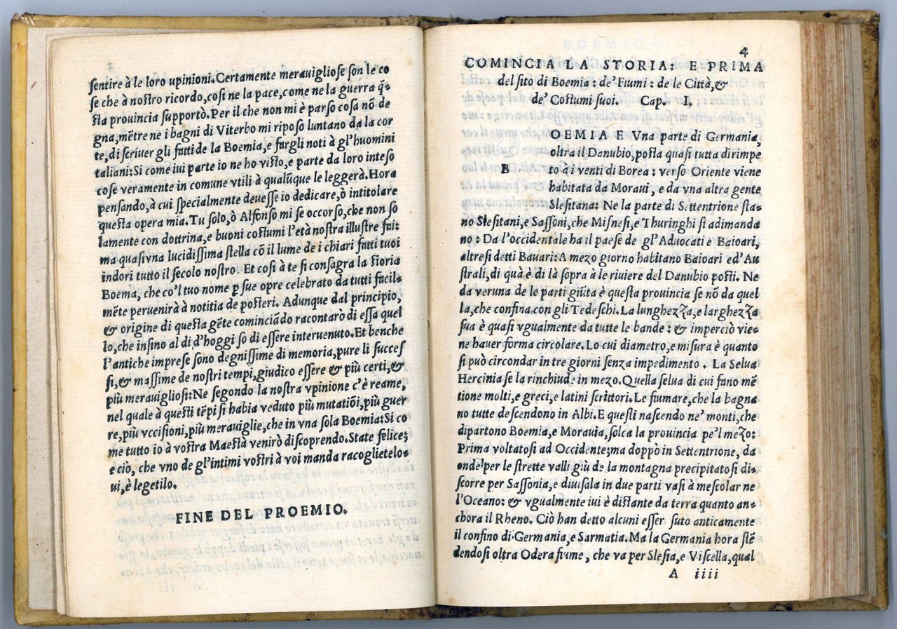 First edition in Italian (the name of translator is not specified) of Enea Silvio Piccolomini's Historia Bohemica, first published in Rome in 1475. This is one of Piccolomini's most remarkable historical works, written shortly before he was elected pope in 1558, the result of his sojourn in Bohemia as papal legate in 1451. It is history of Bohemia from the origins to the Hussite period, based on the three 14th-century Czech chronicles.