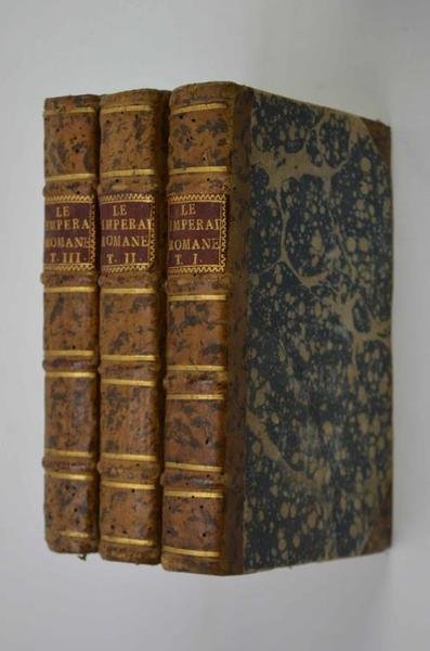 Tre volumi di cm. 17, pp. (8) 446; (8) 437 (3); (8) 402. Antiporta incisa in rame. Solida ed elegante legatura coeva in mezza pelle con punte, dorsi a nervi con filetti in oro e titoli su tassello. Piatti ricoperti in carta marmorizzata. Rade fioriture, ma esemplare fresco ed in ottimo stato di conservazione. Opera che presenta le biografie delle mogli dei dodici Cesari.