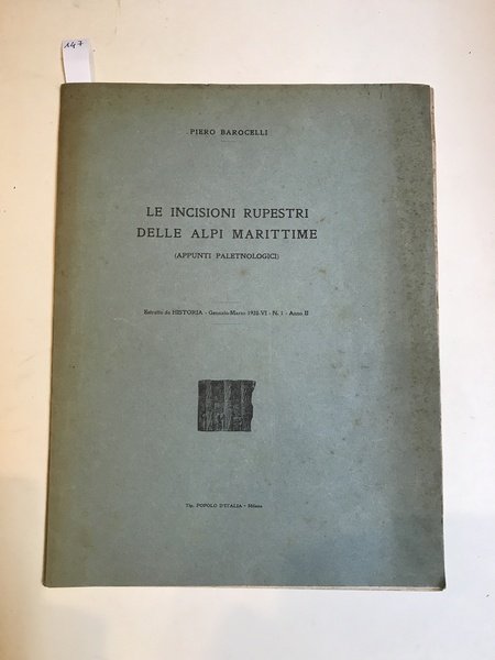 Le incisioni rupestri delle Alpi Marittime (appunti paleontologici). Estratto da Historia Gennaio Marzo 1928 - VI - n. 1 Anno II