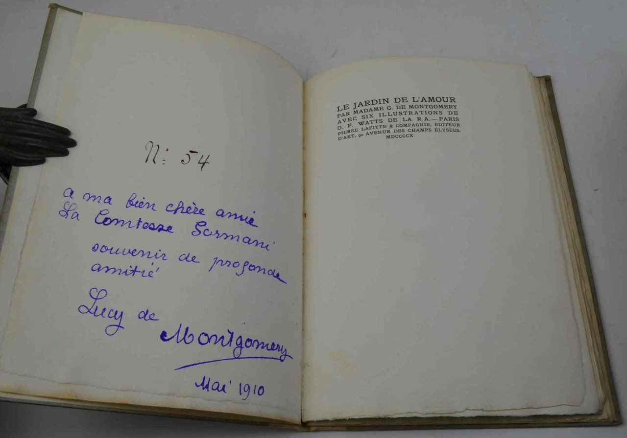 Cm. 27, cc. 17. Con 6 tavole f.t. dell'illustratore preraffaelita G.F. Watts. Legatura edit. in mezza pergamena con titoli a stampa su etichetta al piatto anteriore. Ottimo stato di conservazione. Edizione originale stampata su carta forte in edizione a tiratura limitata di 500 esemplari. Il presente appartiene ai primi cento con numerazione (n. 54), firma e dedica dell'autrice alla Contessa Sormani.
