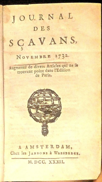 LE JOURNAL DES SÇAVANS novembre 1732 - febbraio 1733 Amsterdam libro antico