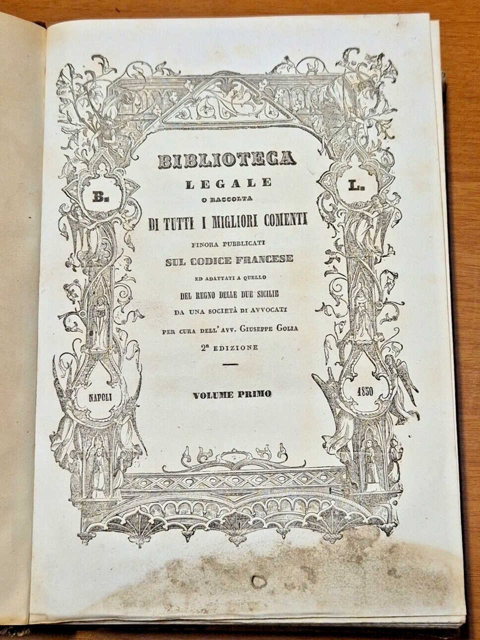 Napoli, a spese dello stabilimento del Guttemberg, 1850. XII,463 + 511 Pagine, testo su due colonne. Copertina in mezza pelle con titoli e fregi dorati al dorso e