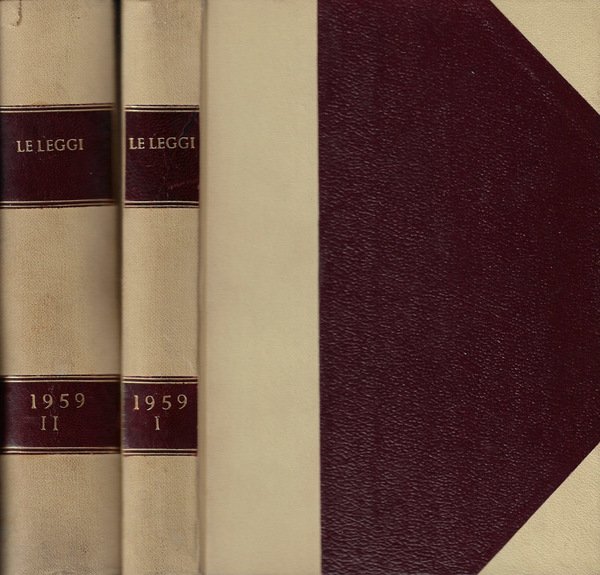 Opera completa in due volumi. Raccolta completa ed annotata della legislazione italiana divisa in I° e II° semestre. Vol. I: I° semestre, a partire dalla Gazzetta ufficiale del 2 gennaio 1959 fino alla n. 152 del 30 giugno 1958 + Indice. Vol. II: II° semestre a partire dalla Gazzetta Ufficiale n. 153 del 1 luglio 1959 fino alla n. 315 del 31 dicembre dello stesso anno seguita da una ricca sezione di indici e di appendici. Mezza legatura con angoli in tela chiara, con titoli solo al dorso, leggermente brunita e con lievi segni d'uso e con strappetto alla cima del dorso. Pagine ingiallite, con testo a due colonne ed in buono stato. Numero complessivo di pagine 1281 con numerazione successiva + 91 (Indici-appendici) + XLIII.