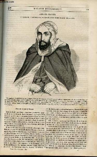 LE MAGASIN PITTORESQUE - Livraison n°027 - Abd - El - Kader (sa famille, son enfance, son élection comme sultan des Arabies).