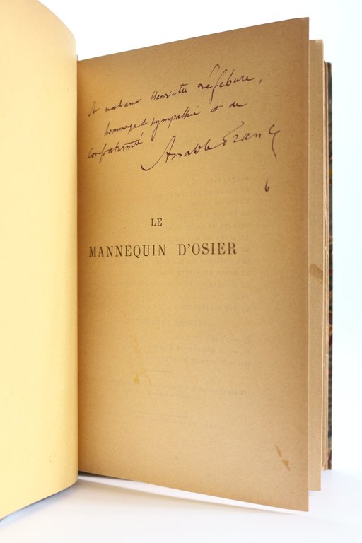 Calmann Lévy | Paris s. d. [circa 1915] | 11.50 x 18.50 cm | relié | [ENGLISH DESCRIPTION ON DEMAND] | Nouvelle édition. Reliure en demi maroquin bleu marine, dos à cinq nerfs, plats de papier marbré, gardes et contreplats de papier à la cuve, couvertures conservées, tête dorée, reliure de l'époque non signée mais attribuable à Petitot. Un petit accroc en tête du dos au niveau d'un nerf. Envoi autographe signé d'Anatole France à madame Henriette Lefebure.