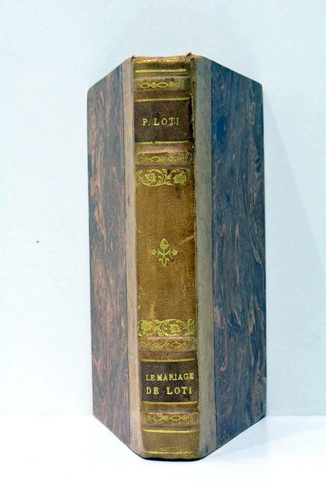 313 pages. 6 feuillets. (18x11,5cm). Demi-cuir. Dos à nerfs orné avec titre et auteur en lettres dorées. Dos légèrement frotté et Sali. Sinon bien relié. Cette œuvre, signée par Pierre Loti, pseudonyme de l'officier de marine Louis Marie-Julien Viaud, plonge le lecteur dans le récit semi-autobiographique d'un amour exotique et éphémère en Polynésie. Publiée initialement en 1880, elle s'inscrit dans le contexte de la Troisième République française, une époque marquée par l'expansion coloniale et un vif intérêt pour l'orientalisme et l'exotisme. Papier légèrement bruni avec petites atches éparses sans gravité. Sinon bien conservé.