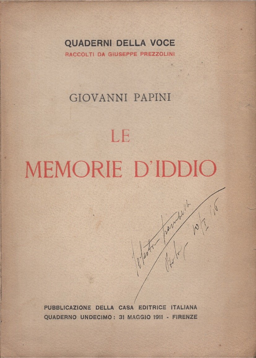 Quaderno undecimo 31 Maggio 1911. Firma di appartenenza in copertina e al titolo. Modesto distacco della copertina in basso