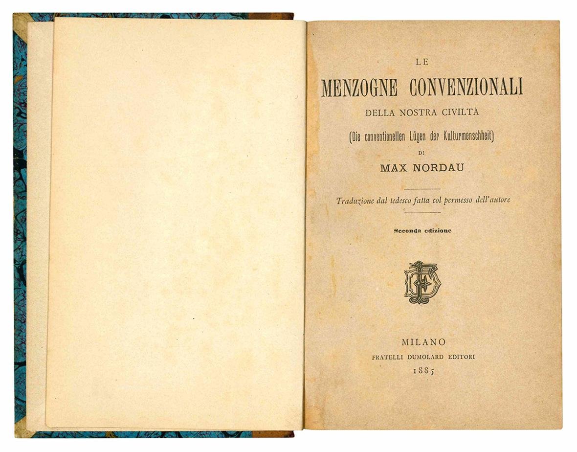 Le menzogne convenzionali della nostra civiltà. (Die conventionellen Lügen der Kulturmenschheit). Traduzione dal tedesco fatta col permesso dell'autore. Seconda edizione.