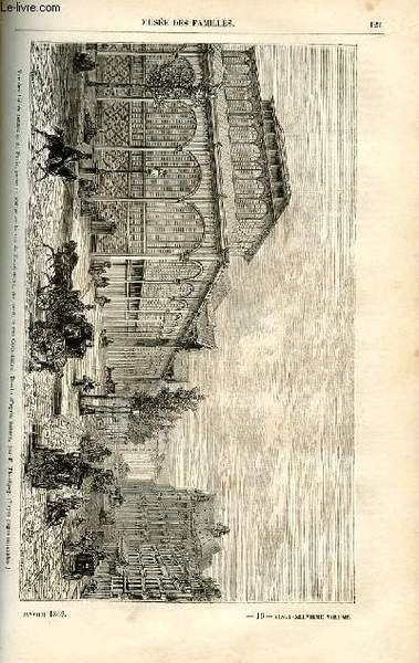 Le musée des familles - lecture du soir - livraison n°16 - Vue des halles centrales de Paris prise au sortir de la rue de Rambuteau par Thorigny, gravure pleine page.