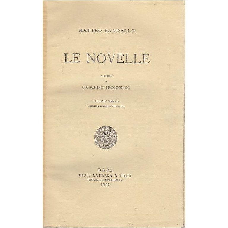 LE NOVELLE Matteo Bandello volume 3 - 1931 Laterza a cura di Brognolino libro