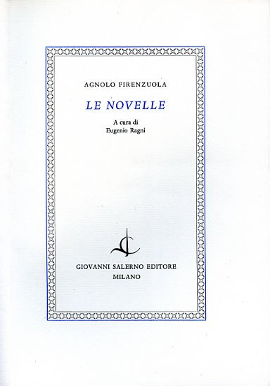 Le Novelle. Questa ediz.speciale de "Le Novelle" di Agnolo Firenzuola è stata composta in carattere Dante di Giovanni Mardersteig e stampata in Verona nella stamperia Valdonega su carta a mano dei F.lli Magnani di Pescia in 326 esemplari. 300 sono num.da 1 a 300 mentre 26 fuori commercio, sono distinti con le lettere dell'alfabeto.