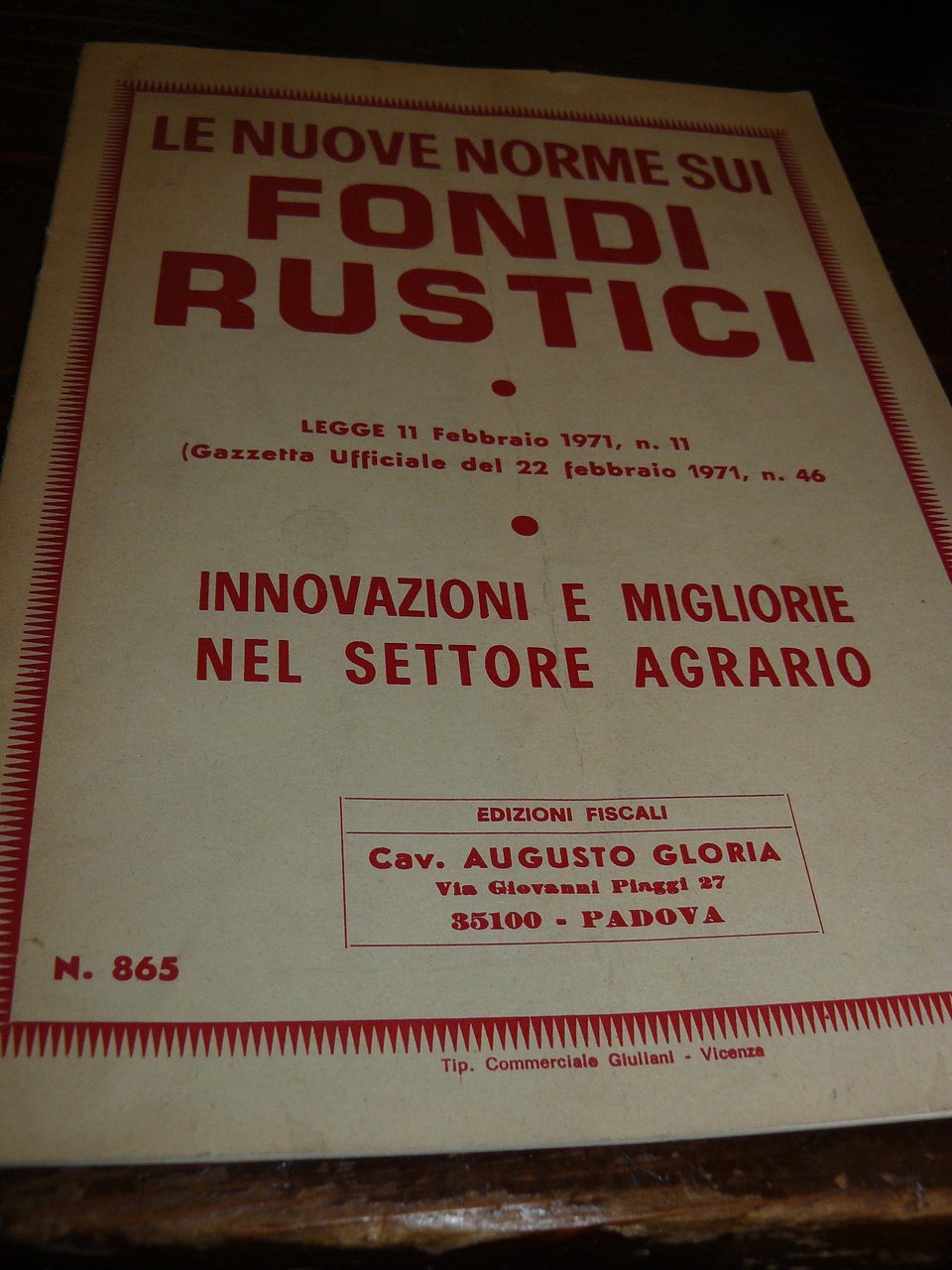 IN-8°, pp. 12, brossura editoriale. Edizioni fiscali Cav. Augusto Gloria