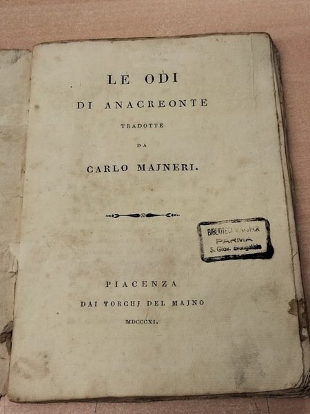 Le odi di Anacreonte, tradotte da Carlo Majneri.
