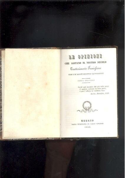 LE OPINIONI CHE AGITANO IL NOSTRO SECOLO. TRATTENIMENTO FAMIGLIAE CON UN GIOVINETTO CATTOLICO