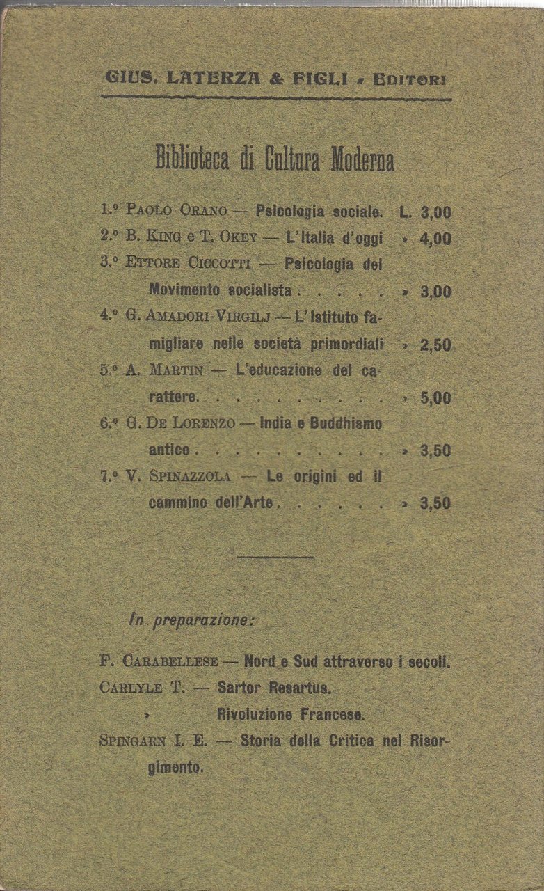 Laterza Editore, biblioteca di cultura moderna, 1904.