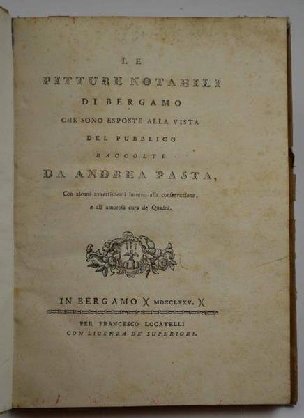 Le pitture notabili di Bergamo, che sono esposte alla vista del pubblico. con alcuni avvertimenti intorno alla conservazione e all'amorosa cura de' Quadri.
