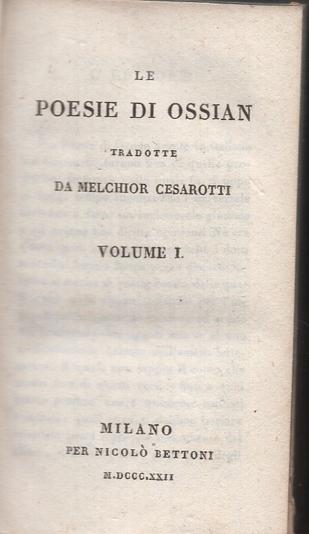 Tradotte da Melchior Cesarotti. Tre volumi uniti in un tomo.Dorso rifatto in carta e con applicata etichetta scritta a mano