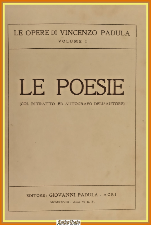 LE POESIE + VARIE E DIALETTALI di Vincenzo Padula 2 volumi in 1 1928 Libro