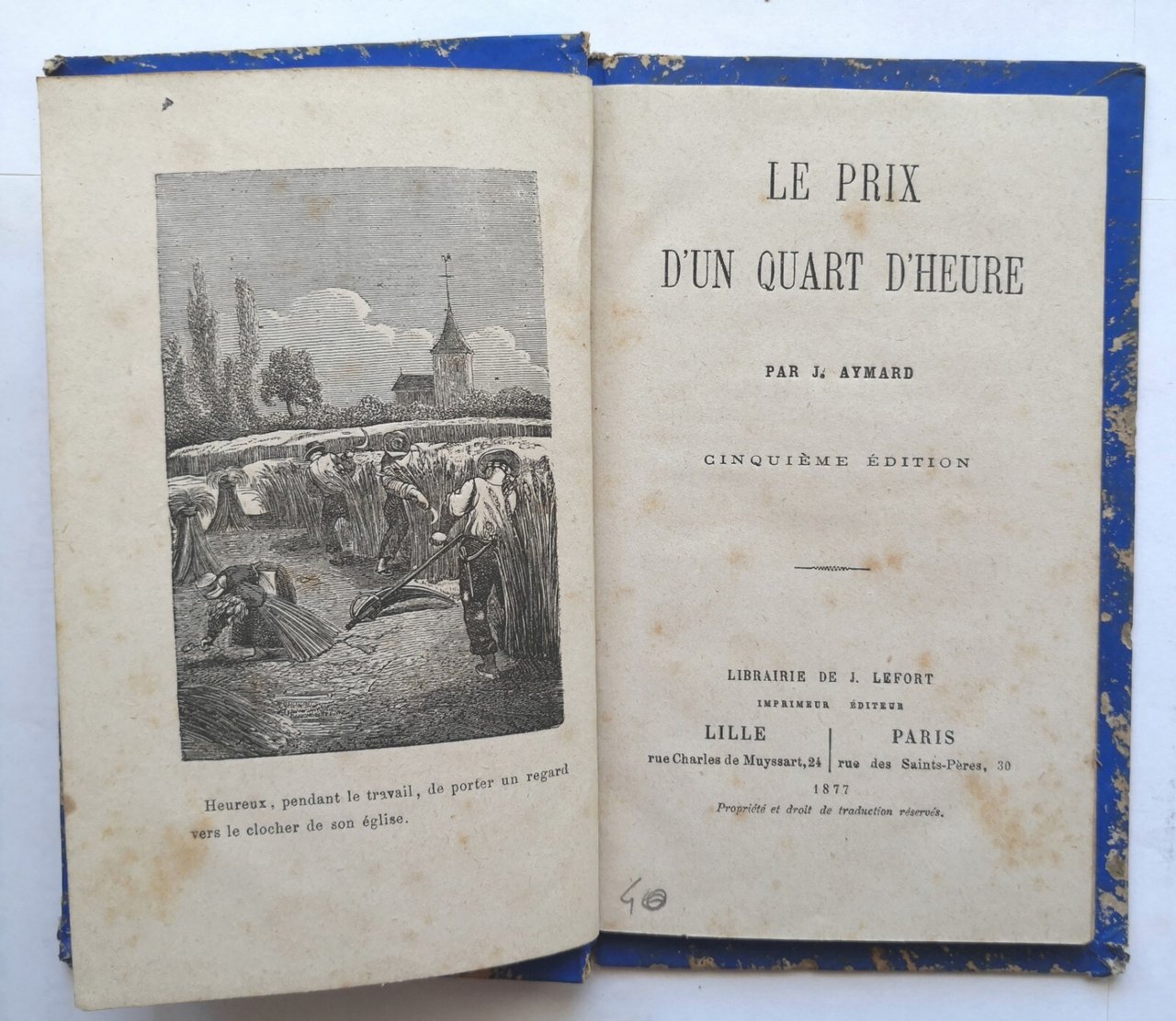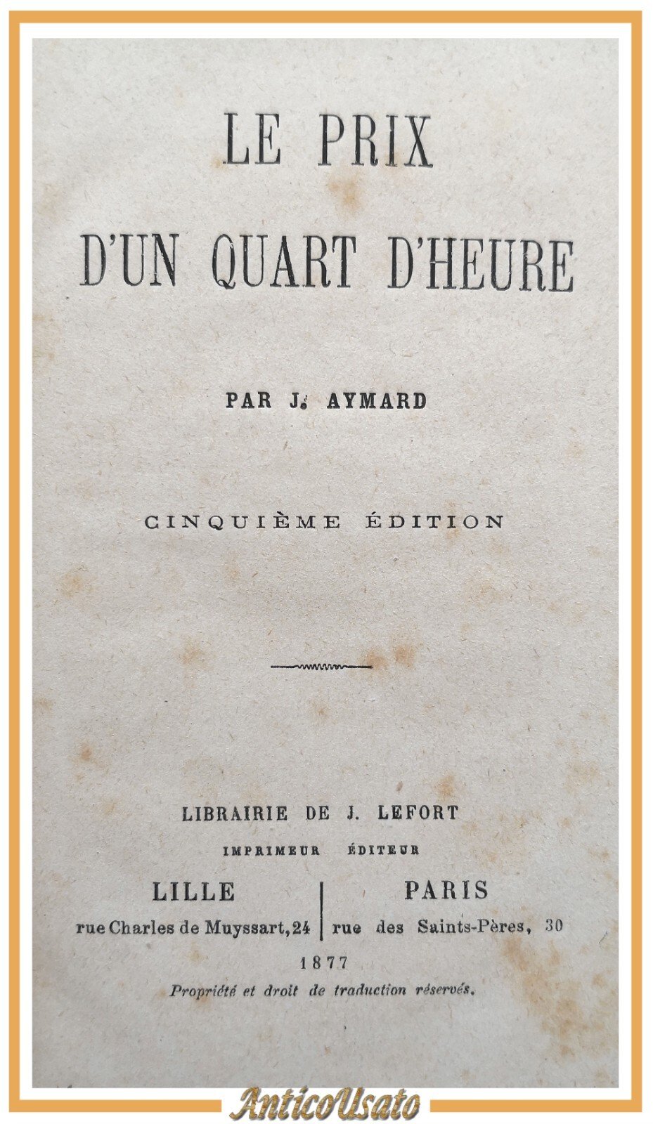 LE PRIX D'UN QUART D'HEURE di Aymard 1877 Librairie de J Lefort libro antico