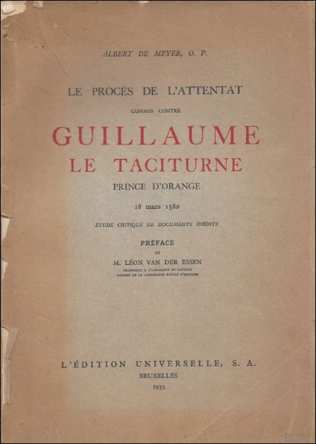 LE PROCES DE L'ATTENTAT COMMIS CONTRE GUILLAUME LE TACITURNE PRINCE D'ORANGE 18 MARS 1852. ETUDE CRITIQUE DE DOCUMENTS INEDITS.