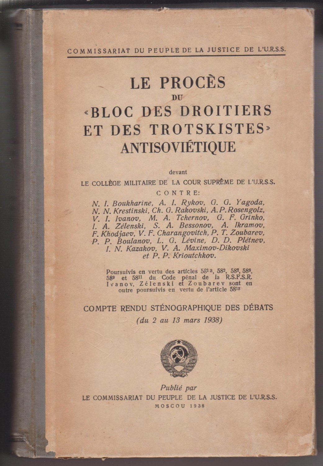 Le Procès du "Bloc des Droitiers et des Trotskistes" Antisoviétique contre: N. I. Boukharine, A. I. Rykov .