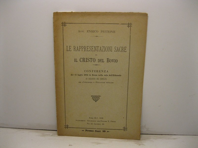 Le rappresentazioni sacre ed il Cristo del Bovio. Conferenza del 15 luglio 1894 in Roma nella sala dell'Eldorado ad iniziativa del comitato per l'istruzione e l'educazione popolare