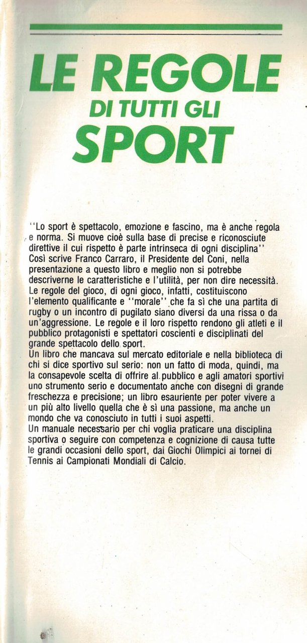 Le regole di tutti gli sport Presentazione di Franco Carraro presidente del CONI (stampa 1984)