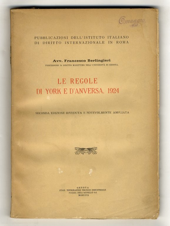 Le regole di York e d'Anversa, 1924. Seconda edizione riveduta e notevolmente ampliata.