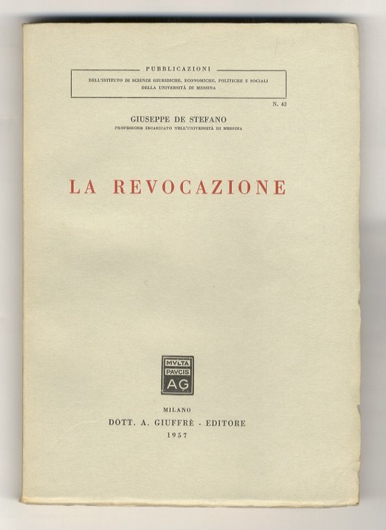 Milano, Giuffrè, 1957, in-8, brossura editoriale, pp. 209, [3]. Ottimo esemplare.