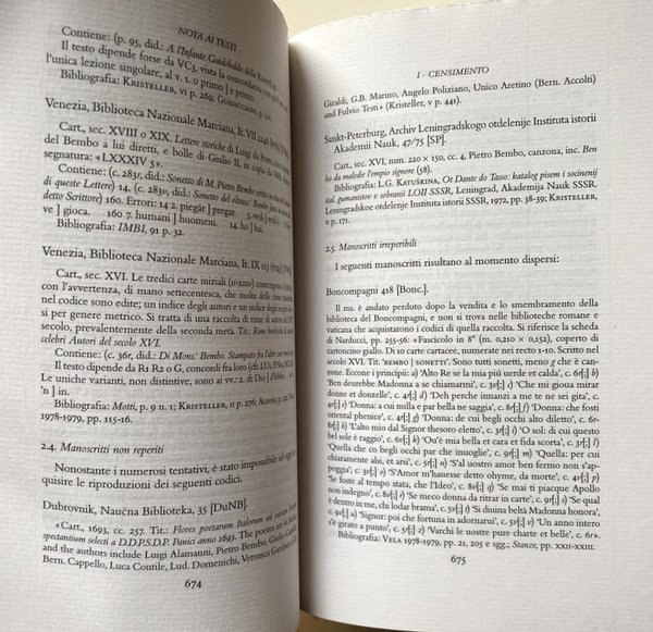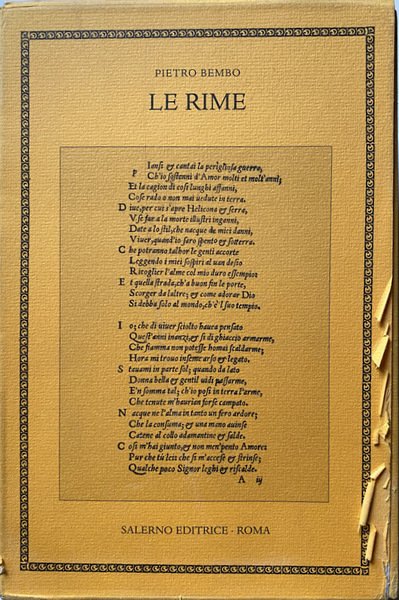 Soggetti: Poesia italiana, Poeti, Letteratura, Italianistica, Antologie poetiche, Raccolte, Classici, Lingua italiana, Libri Vintage Fuori catalogo, Edizioni critiche pregiate, Critica letteraria, Dalle origini al Settecento, Testi letterari, Opere complete, Rime, Versi, Grazia, Lussuria, Manoscritti, Poeta cardinale, Petrarchismo, Quattrocento, Cinquecento, Manoscritto Viennese, Bibliografia, Note, Filologia, Corpus, Lirica, Ultimi Giorni Estremi, Lucrezia Borgia, Cardinali, Gli Asolani, Urbino, Toscana, Firenze, Leone X, Padova, Ferrara, Messina, Prose della volgar lingua, Volgare, Imitazione, Emulazione, Modelli, Petrarca, Canzoniere, Scuola umanistica, Umanesimo, Rinascimento, Stile, Testi lirici bembiani, Morosina, Venezia, Aldo Manuzio, Carlo Dionisotti, Strofe, Canti, Madrigali, Studi letterari, Cultura, Rima inclusiva, Sonetti, Sintagma, Tradizione quattrocentesca, Metrica, Sinossi editoriale, Apparato critico, Biblioteca Marciana, Boncompagni, Galeotto Franciotti della Rovere, Elisabetta Gonzaga, Guidubaldo, Bernardo Dovizi, Ercole d'Este, Benedetto Morosini, Aristocrazia veneta, Cartiere Fedrigoni, Donne, Amore, Lettere, Madonna, Piacere, Dinisotti, Dubbie, Dovizi da Bibbiena, Italian poetry, Poets, Literature, Italian studies, Poetic anthologies, Collections, Classics, Italian language, Out of print books, Critical critical editions, Literary criticism, From the origins to the eighteenth century, Literary texts, Complete works, Rhymes, Verses, Grace, Lust, Manuscripts, Cardinal poet, Petrarchism, Viennese Manuscript, Bibliography, Notes, Philology, Lyrics, Last Days, Cardinals, Tuscany, Florence, Leo X, Padua, Prose della vulgar lingua, Vulgar, Imitation, Emulation, Models, Humanistic school, Humanism, Renaissance, Style, Bembian lyric texts, Venice, Stanzas, Songs, Madrigals, Literary studies, Culture, Inclusive rhyme, Sonnets, Syntagma, 15th century tradition, Metric, Editorial synopsis, Critical apparatus, Venetian aristocracy, Women, Love, Letters, Madonna, Pleasure, Doubts