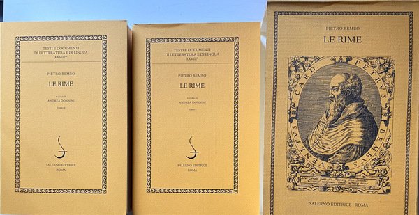 A lungo trascurata a favore delle opere volgari in prosa e fatta segno solo di recente di un recupero di attenzione negli studi, la produzione poetica di Pietro Bembo (1470-1547) fu continua negli anni e molto fortunata tra i contemporanei e i posteri. Questa edizione delle Rime rivaluta il manoscritto Viennese, idiografo e rivisto dall'autore sino al limite della propria esistenza, contro la più accreditata ma assai sospettabile edizione postuma; mette a frutto per la prima volta una complessiva recensio della cospicua tradizione manoscritta e a stampa, e propone alcune significative accessioni, apografe e autografe, a quanto noto sino ad oggi. Al “canzoniere” vero e proprio si aggiunge la raccolta dei testi rifiutati, dispersi, e dubbi. Attraverso le schede di apparato è possibile ripercorrerne l'evoluzione. Le rime sono inoltre accompagnate da un commento che fornisce il necessario ausilio alla lettura: chiarisce cronologia e occasioni di composizione; identifica personaggi e fatti storici menzionati o allusi; assolve alle funzioni minime di “traduzione” di parole o giri di frase desueti; segnala i loci paralleli nella produzione bembiana (rime e altre opere); propone fonti che verosimilmente sono state utilizzate nella composizione e nella rielaborazione dei testi; analizza le modifiche ad essi apportate dall'autore. Ne risulta restituita tutta la produzione poetica volgare di uno dei maestri del secolo.